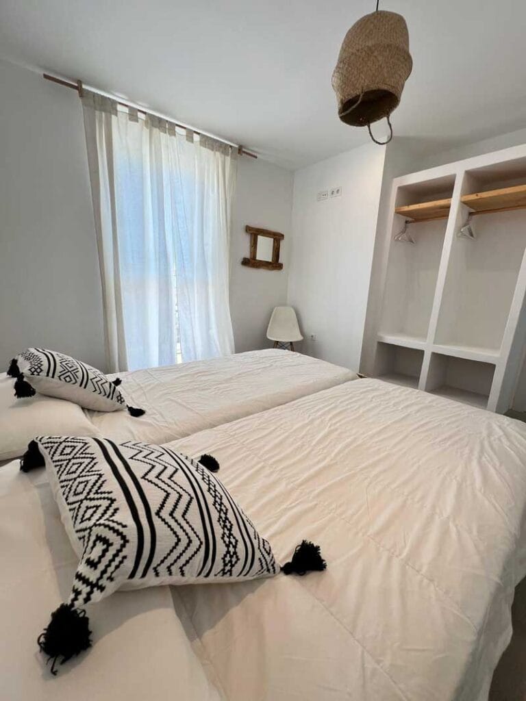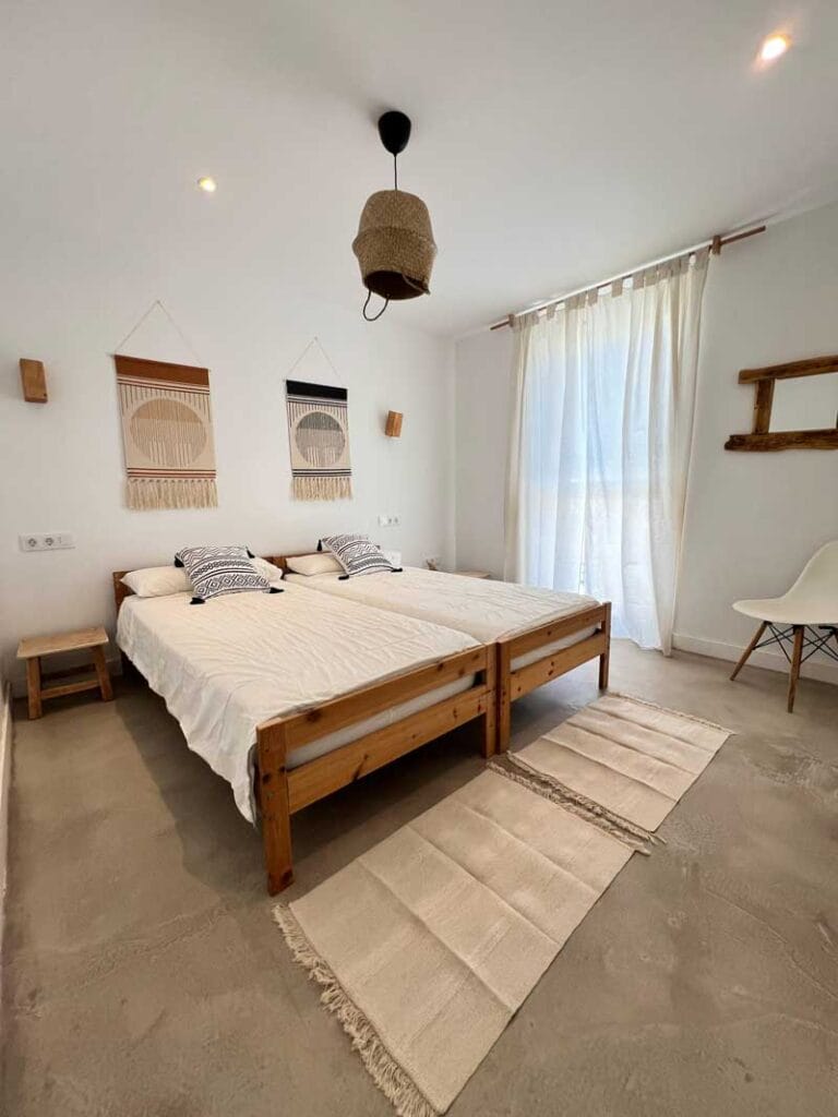 Die Villa hat zwei Schlafzimmer: eines privat und eines mit Etagenbetten für bis zu vier Personen. Außerdem drei Bäder, Bettwäsche, Handtücher, Fernseher, voll ausgestattete Küche und eine Terrasse.